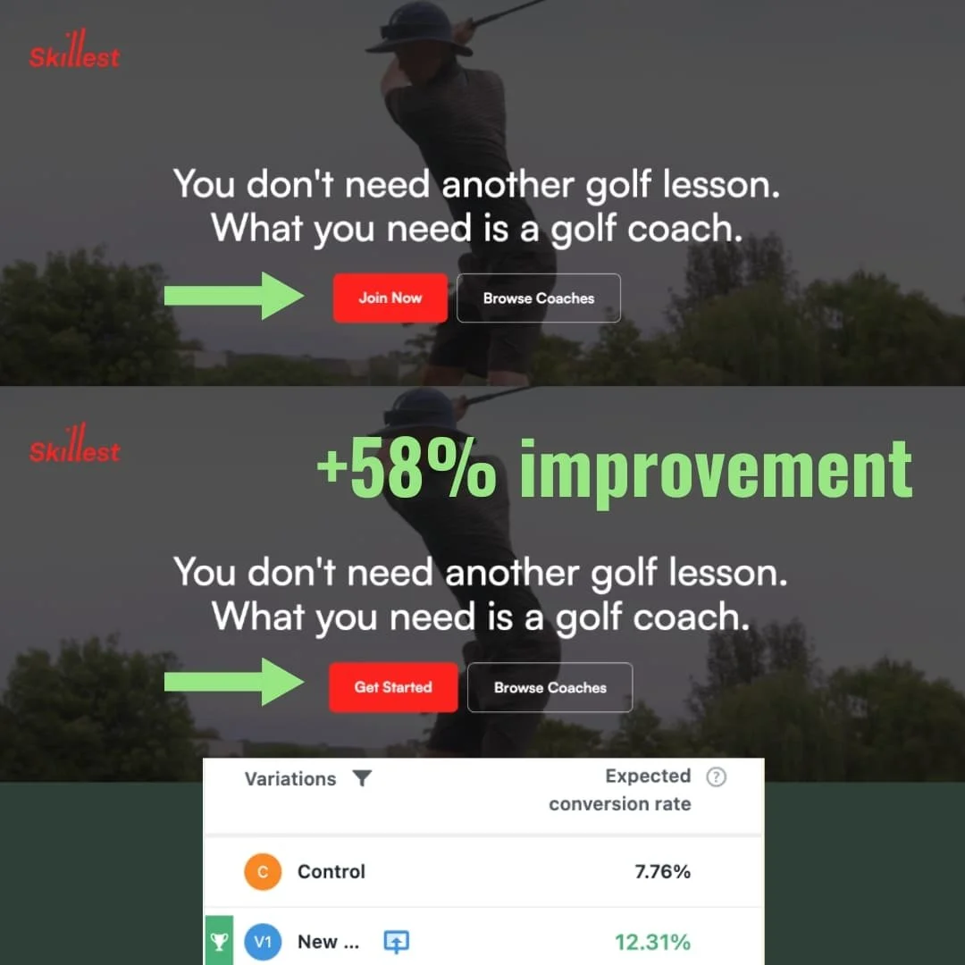 Online coaching platform Skillest wanted to improve homepage click-through to increase new account creation.